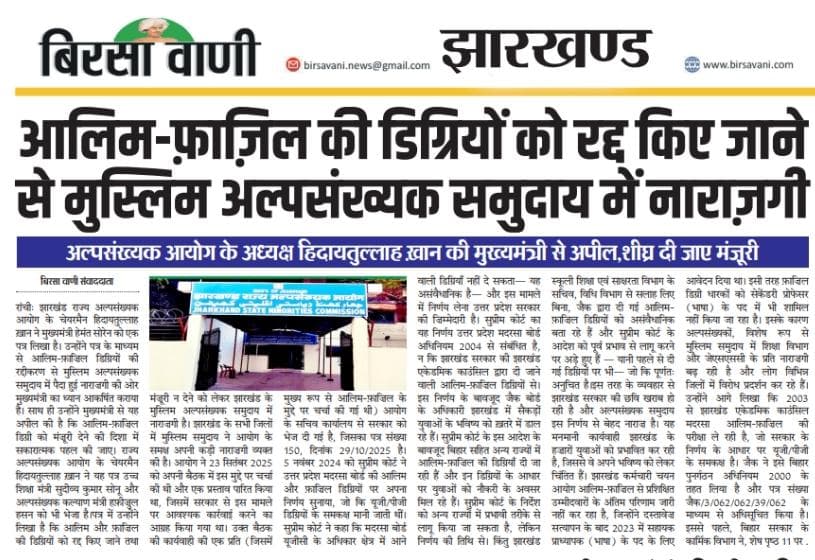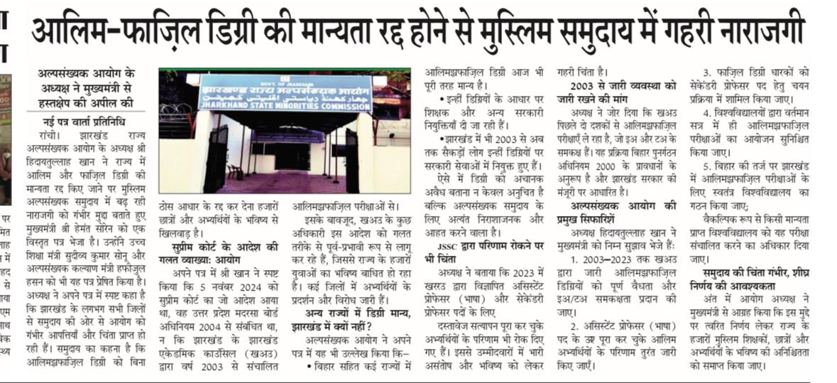 दिनांक 3/7/25 को हजारीबाग परिसदन में अल्पसंख्यकों की समस्याओं को सुना और फिर वहां के जो भी उस समस्या से सम्बन्धित उस विभाग के अधिकारी थे, उनसे वहीं पर उनकी समस्याओं का निष्पादन करने का निर्देश दिया।